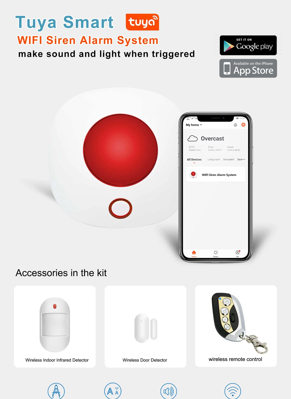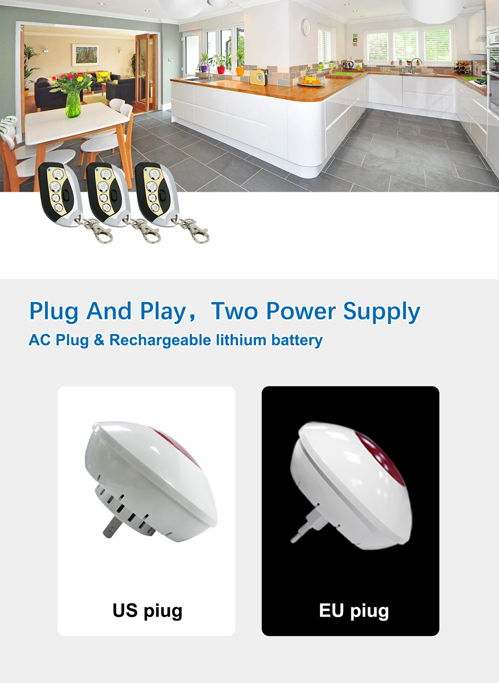 All option: (battery not include) option”A” : 433MHz wireless siren EU plug. option”B” : 433MHz wireless siren US plug. option”C” : tuya Wifi + wireless siren EU plug. option”D” : tuya Wifi + wireless siren US plug.