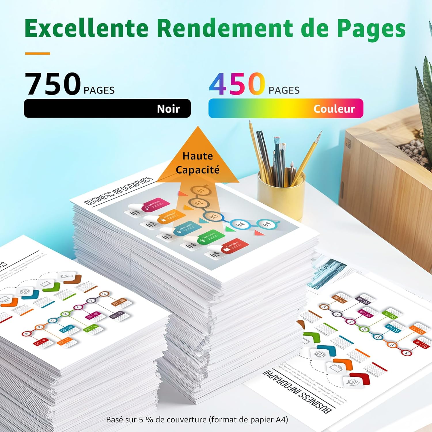 Rendement ultra-élevé: les cartouches d’encre haute capacité GREENSKY 305 XL impriment 130 % de pages en plus que les cartouches standard, avec 750 pages pour la 305XL noir et 450 pages pour la 305XL couleur (sur la base d’une couverture de 5 % sur papier A4). Cela réduit les remplacements et améliore l’efficacité, offrant ainsi une solution d’impression pratique et économique
