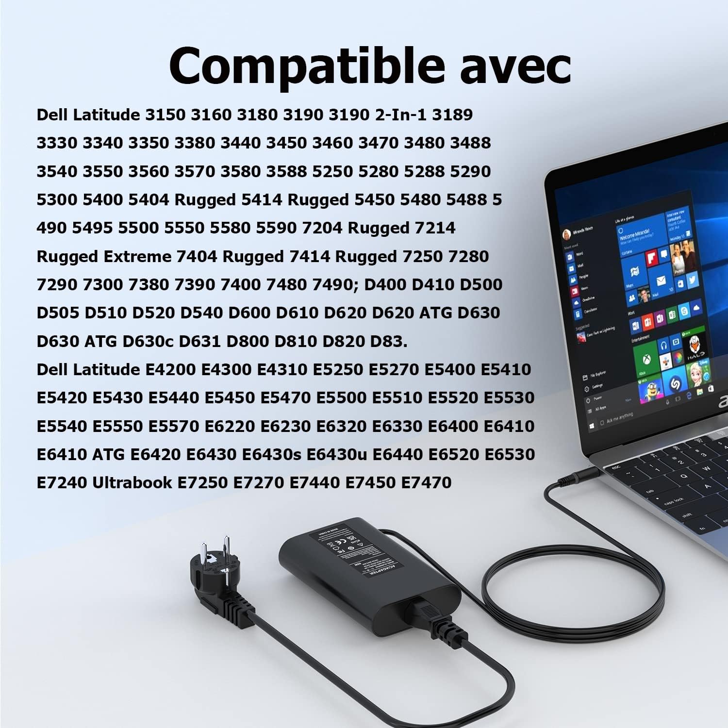 【Modèles Compatibles】Chargeur Dell Latitude E4200 E4300 E4310 E5250 E5270 E5400 E5410 E5420 E5430 E5440 E5450 E5470 E5500 E5510 E5520 E5530 E5540 E5550 E5570 E6220 E6230 E6320 E6330 E6400 E6400 ATG E6400 XFR E6410 E6410 ATG E6420 E6420 ATG E6420 XFR E6430 E6430 ATG E6430s E6430u E6440 E6520 E6530 E7240 Ultrabook E7250 E7270 E7440 E7450 E7470; Latitude 3150 3160 3180 3189 3330 3340 3350 3380 3440 3450 3460 3470 3480 3488 3490 3540 3550 3560 3570 3580 3588 5250 5280 5288 5290 5404 Rugged 5414 Rugged 5450 5480 5488 5490 5495 5550 5580 5590 7204 Rugged 7214 Rugged Extreme 7404 Rugged 7414 Rugged 7250 7280 7290 7380 7390 7480 7490