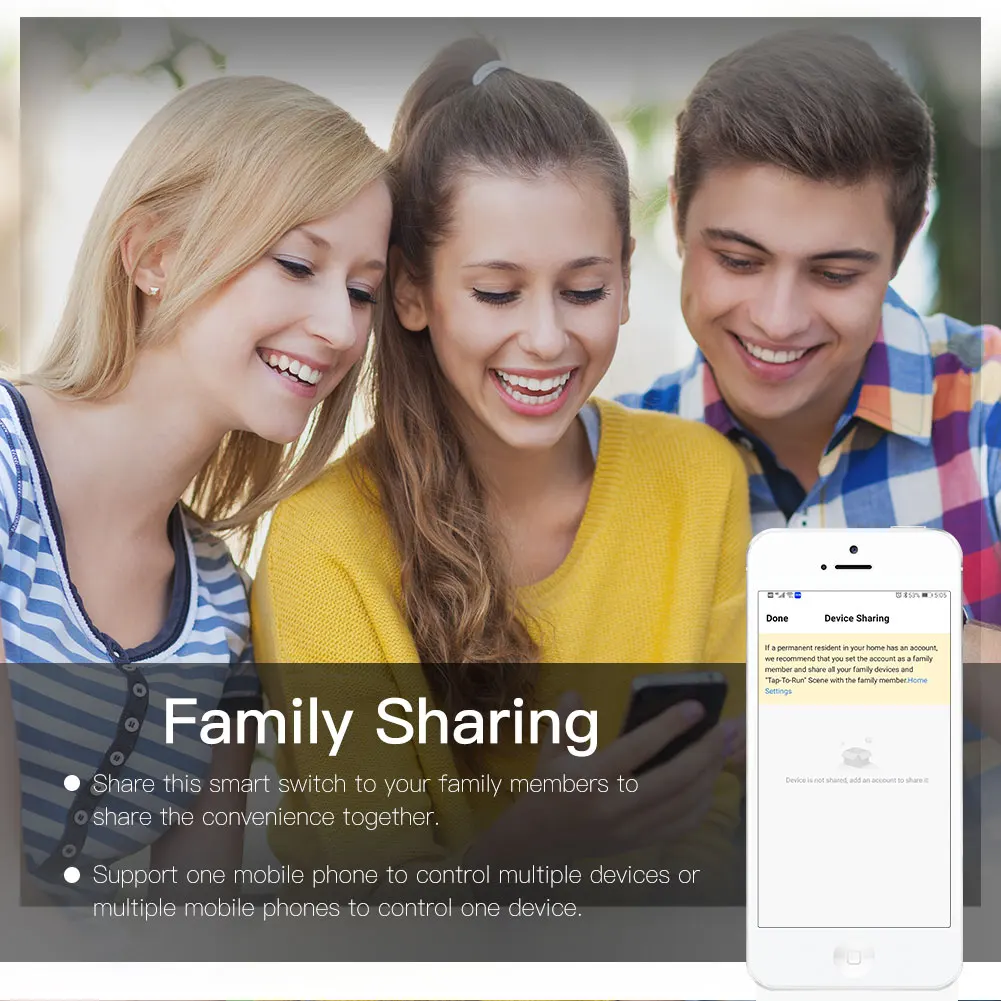 3.Reinsert new features into upgraded Smart Life Tuya App backlight switch setting also,providing much more humanized intelligent operation design for your smart lifestyle;share control with family and friends for added convenience.